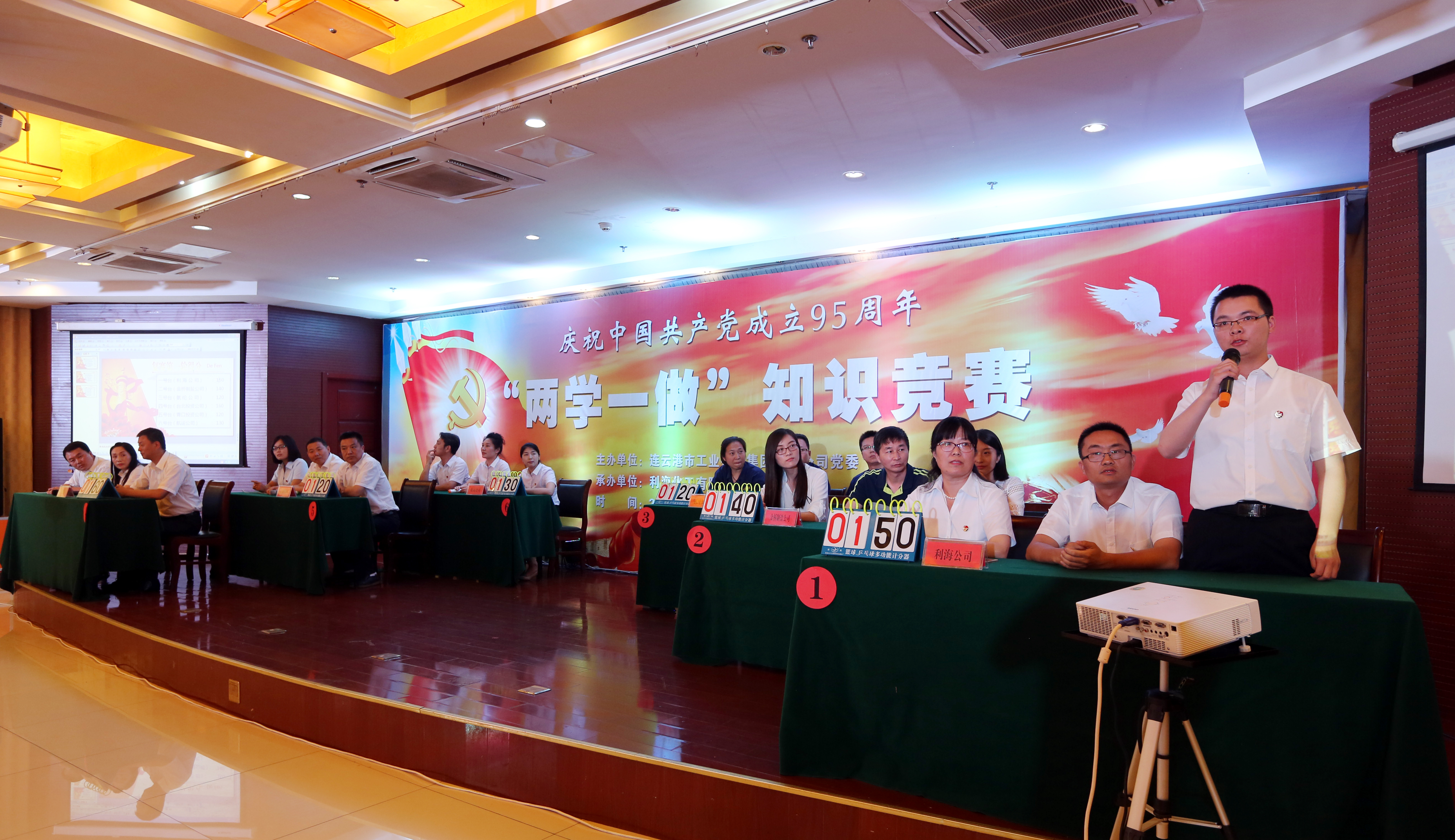 6月24日下午,由集團公司黨委主辦、利?;す军h總支承辦的紀(jì)念建黨95周年“兩學(xué)一做”學(xué)習(xí)教育知識競賽在臺南大酒店隆重舉行。集團公司領(lǐng)導(dǎo)楊龍、戴鴻鳴、匡友本、陳如軍,集團公司“兩學(xué)一做”學(xué)習(xí)教育領(lǐng)導(dǎo)小組及辦公室全體成員,總部各部門代表,各權(quán)屬單位黨組織主要負責(zé)人、分管黨建、紀(jì)檢工作副書記、黨群工作部、紀(jì)委負責(zé)人等觀看了知識競賽。