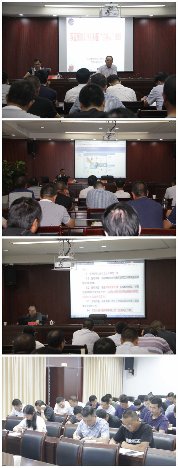 本次培訓主要分為兩部分:第一部分是在上午邀請九九六注冊安全工程師事務所譚磊、無錫五邦安全軟件王成陽進行雙重預防機制培訓;第二部分為下午邀請連云港供電公司安質(zhì)部李加慶進行“三種人”專項培訓,并進行了考試,40余名參加培訓的人員全部通過考核。