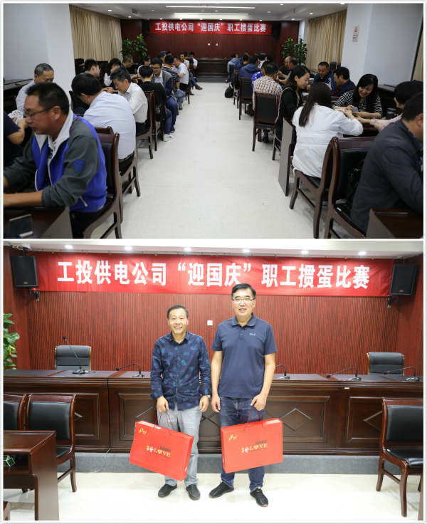 為喜迎國慶佳節(jié),豐富員工業(yè)余生活,加強職工溝通交流。公司于2018年9月30日在1216會議室舉辦“迎國慶”摜蛋比賽。本次活動得到了各單位、部門的熱烈響應,員工踴躍報名參加比賽。最終,采取分會推薦的選撥方式,共有12對選手參加比賽。 經過4輪的激烈角逐,來自徐圩供電所的孫維兵、王志勇組合,過關斬將,榮獲冠軍。(電宣)