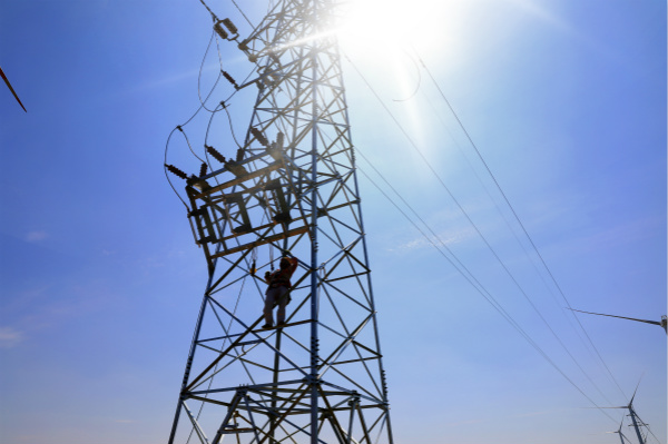 14至18日,灌西供電所轄區(qū)。為了保證7月18日順利完成和風(fēng)風(fēng)電西線線路工程,施工現(xiàn)場一片熱火朝天的景象,電力施工人員正頭頂烈日,揮汗如雨,正在緊張施工?!笆┕ぶ幸欢ㄒ⒁獍踩?,打好安全帶和保險(xiǎn)繩,防止中暑”灌西供電所所長,施工總負(fù)責(zé)人馬德松囑現(xiàn)場施工人員。烈日中野外施工既拼體力,更拼毅力,施工材料被曬得燙手,鐵塔只能戴手套才能攀爬,施工人員衣服汗透被曬干,曬干再次被汗透,施工環(huán)境十分艱苦。為了趕工程進(jìn)度,施工人員戰(zhàn)高溫、斗酷暑,但沒有一個(gè)人叫苦叫累,經(jīng)過5天苦戰(zhàn),工程順利結(jié)束。