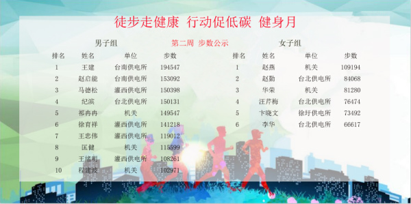 因?yàn)椤拔⑿胚\(yùn)動(dòng)”的互動(dòng)性和競(jìng)爭(zhēng)性,促使越來越多的職工開始有意識(shí)地外出“走兩步”,在職工中形成了你超我趕的良好運(yùn)動(dòng)氛圍,有效減少了員工開車出行的頻率,增加了員工參與戶外活動(dòng)、親近自然的興致。活動(dòng)已經(jīng)進(jìn)行了兩周,已有10人步數(shù)超過20萬(wàn),最高者已經(jīng)達(dá)到34萬(wàn),人均步數(shù)比活動(dòng)前增加了50%,效果十分顯著。(電宣)