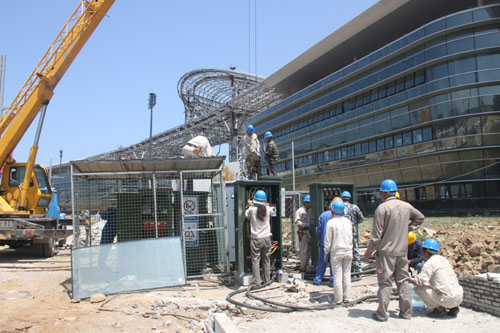 該所在承攬此項(xiàng)工程后,克服施工時(shí)間緊、現(xiàn)場(chǎng)地形復(fù)雜、交叉作業(yè)多等困難,精心策劃、周密部署,嚴(yán)格按照工程施工預(yù)案,在演藝廣場(chǎng)和美食街地段新增一條10千伏電源,改造兩處10千伏電源進(jìn)口,敷設(shè)5公里10千伏高壓電纜,設(shè)置11臺(tái)電源分支箱、3臺(tái)路燈廂變,安裝5臺(tái)400千伏安變壓器,最終形成了一個(gè)主供、兩個(gè)備用的供電輸送網(wǎng)格局。