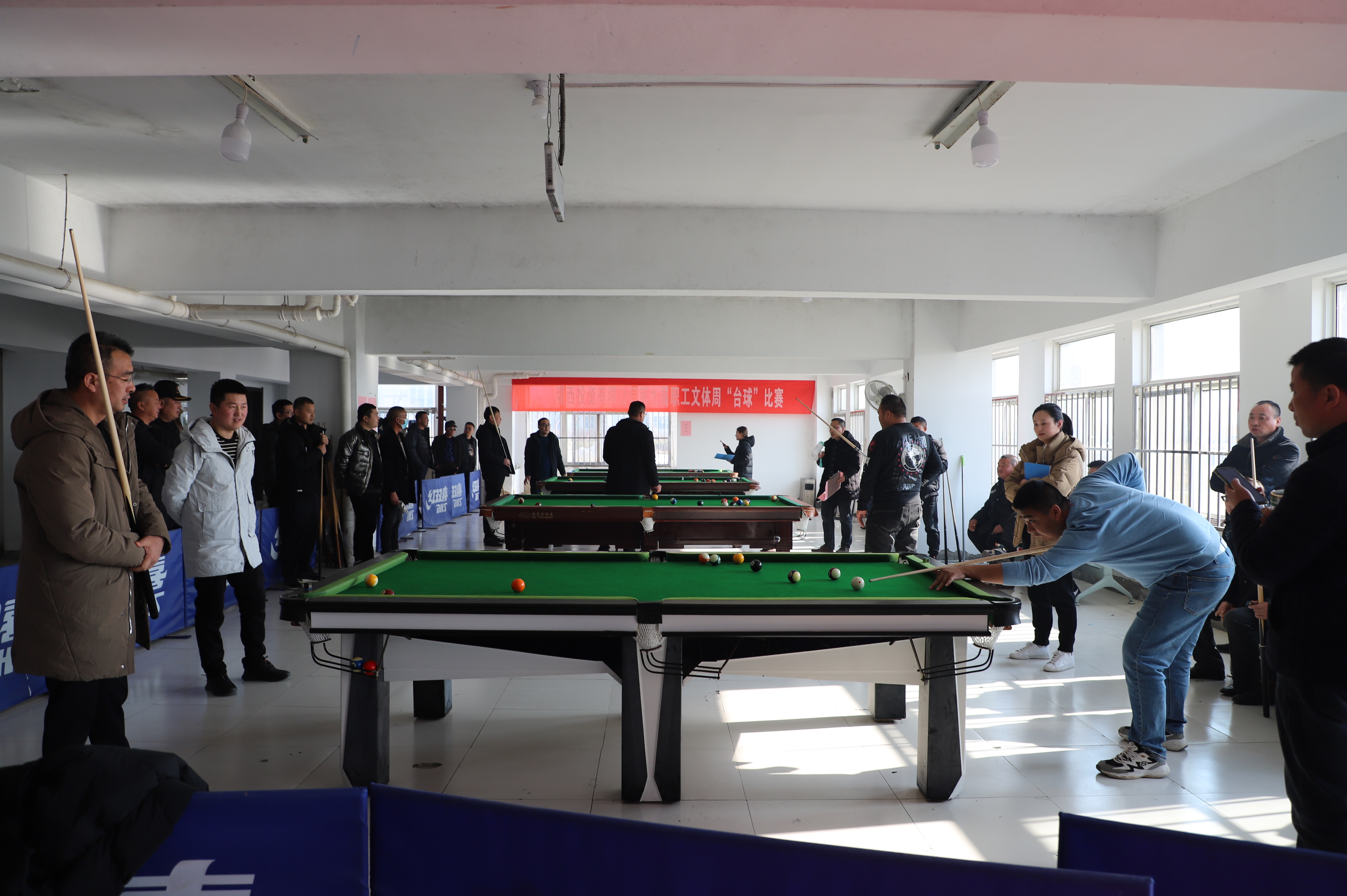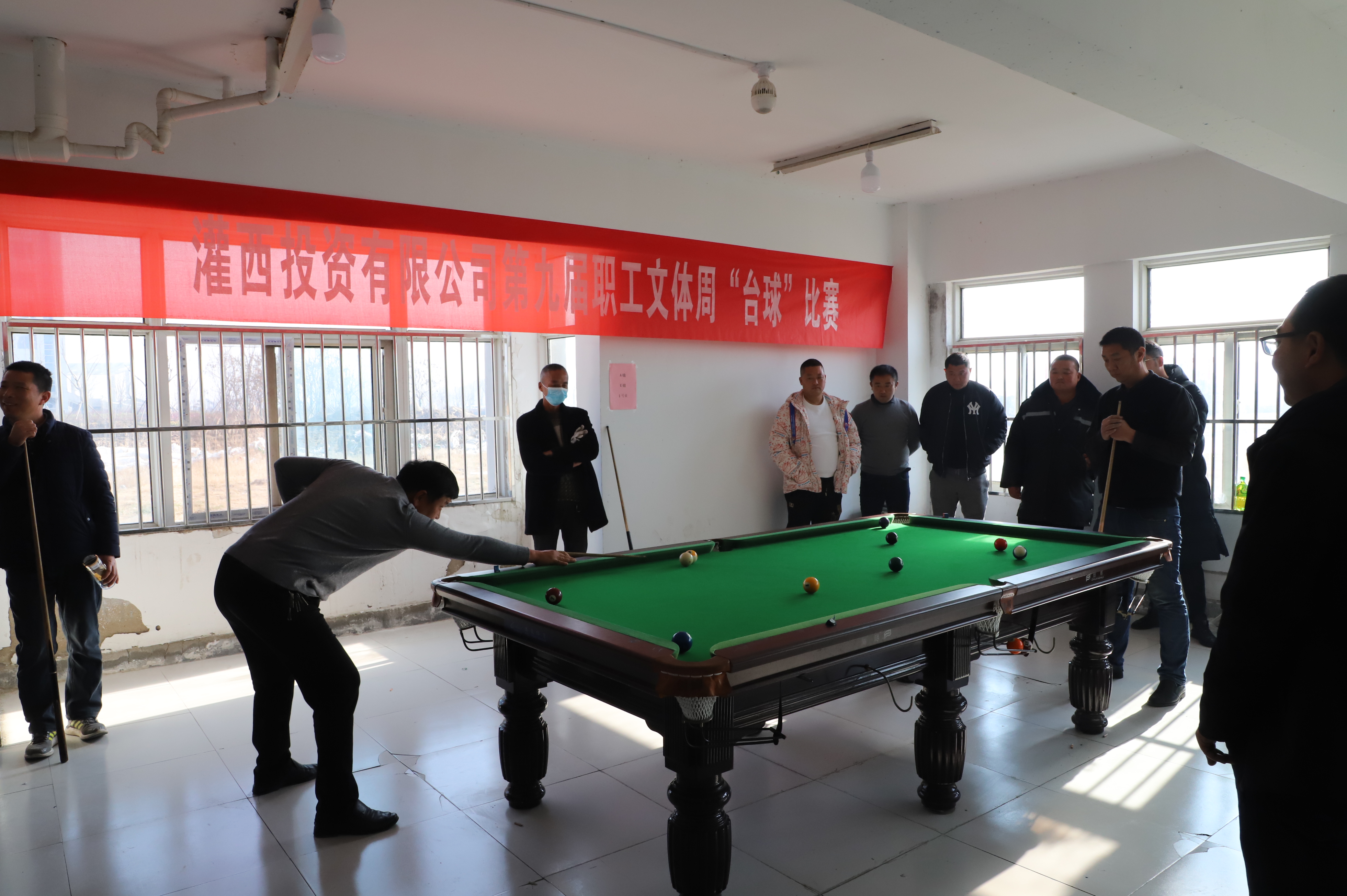 12月21日下午,臺(tái)球比賽在裁判員一聲令下正式開始,來(lái)自各個(gè)單位56名選手,分為8組進(jìn)行比賽,采取單循環(huán)淘汰規(guī)則,小組內(nèi)進(jìn)行逐對(duì)“廝殺”,小組前兩名出線。比賽過程相當(dāng)激烈,有的眾多高手被分在一組,俗稱“死亡之組”,每個(gè)人臉色凝重,場(chǎng)外圍滿了觀眾;有的爆出“冷門”,去年獲得第一名的選手第一輪慘遭淘汰;有的選手比較緊張,洞門門口球都沒有打進(jìn)。經(jīng)過激烈角逐,共有16名選手出線。