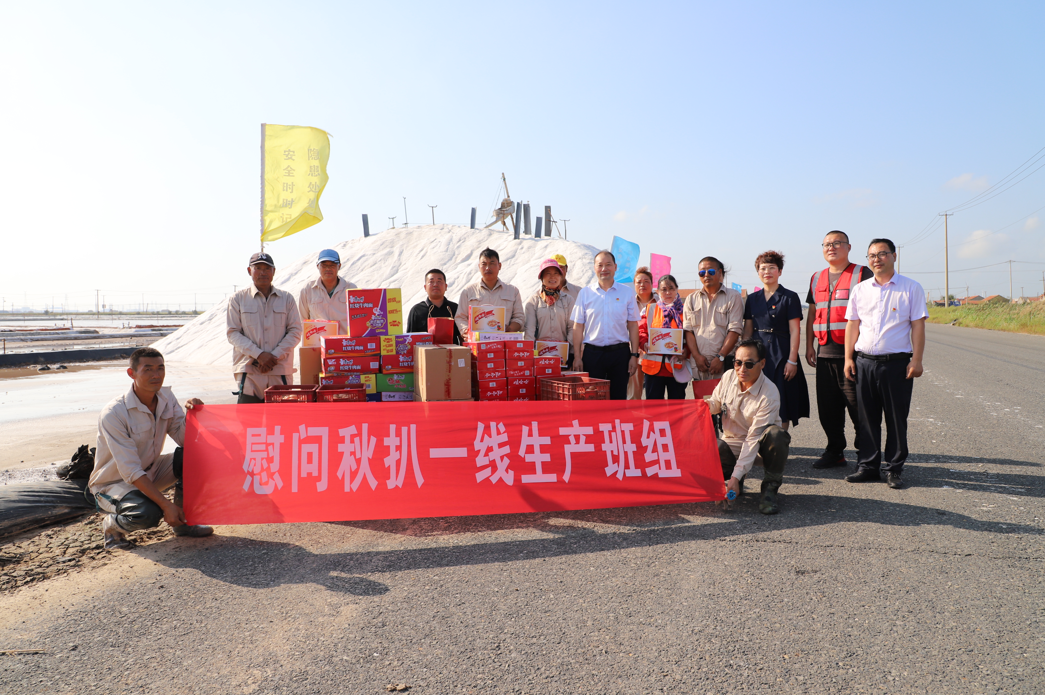 秋高氣爽,“國(guó)慶”將至。9月24日,投資公司黨委書記、董事長(zhǎng)、總經(jīng)理李國(guó)文,黨委副書記、工會(huì)主席王宏走訪慰問奮戰(zhàn)在一線的扒鹽員工并送上節(jié)日的慰問和祝福。