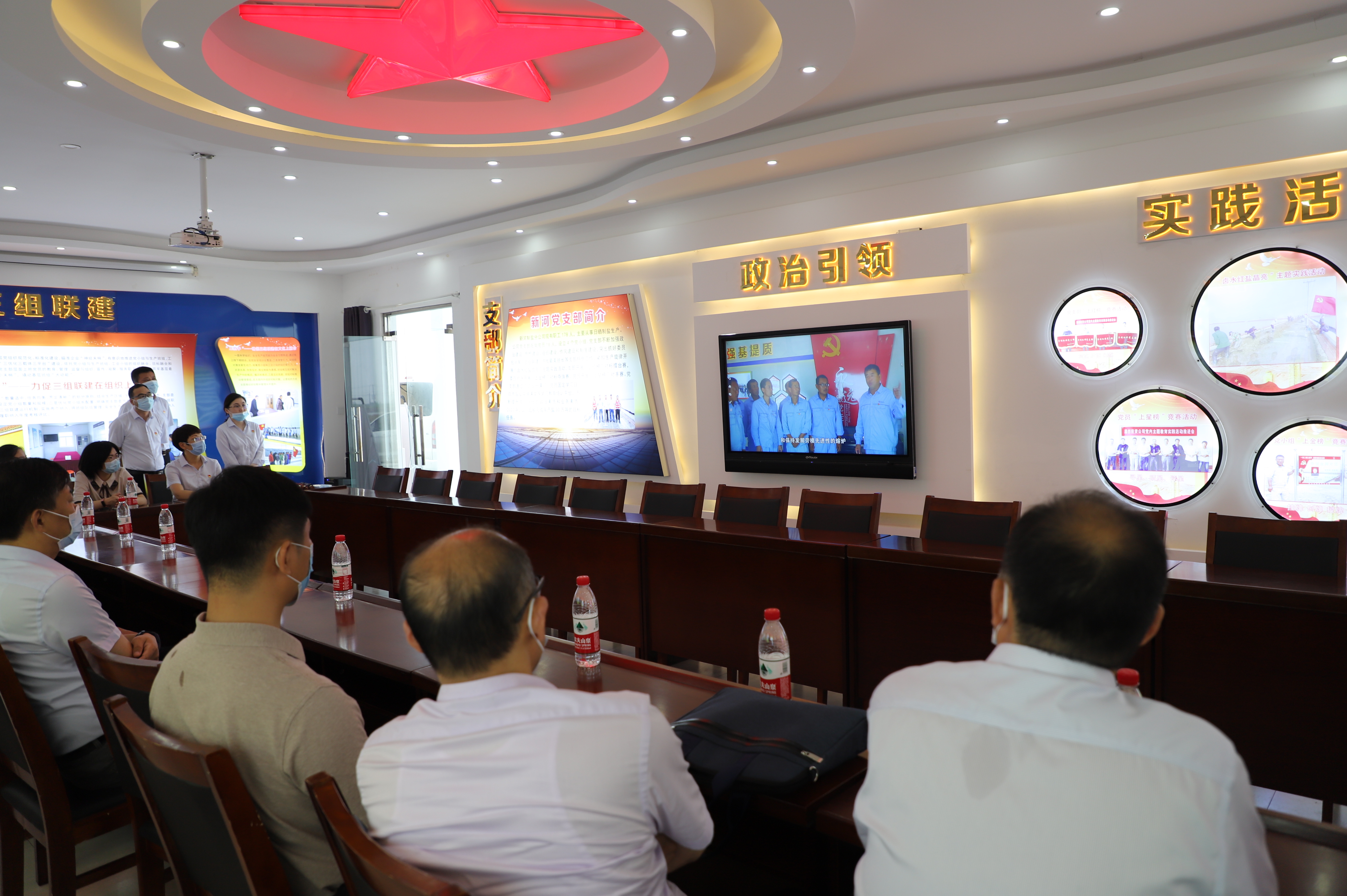 城建控股集團(tuán)產(chǎn)改調(diào)研組一行分別到日曬制鹽公司新河分公司黨建活動室、八班班組活動室以及灌西投資公司的廉政文化展廳、職工書屋等處參觀學(xué)習(xí),觀看了黨建帶工建專題片《“四+模式”助推勞模創(chuàng)新工作黨支部“雙創(chuàng)雙提升”》和《安樹林勞模創(chuàng)新工作室科技創(chuàng)新成果》視頻介紹,在隨后召開的交流會上,劉承志、李國文分別就工投集團(tuán)和灌西投資公司的產(chǎn)改工作進(jìn)行了交流。