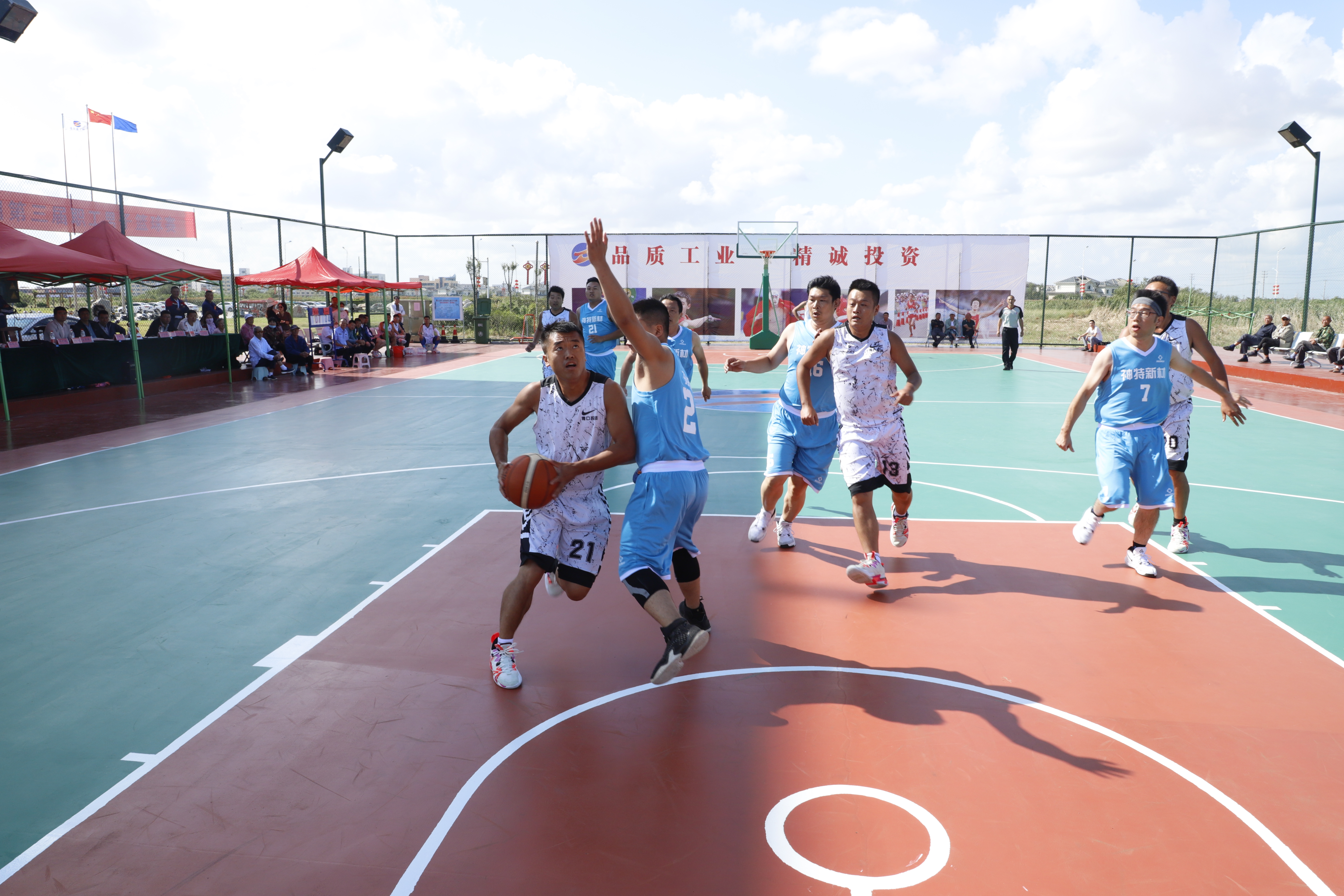 青口迎戰(zhàn)神特,雙方開場(chǎng)比較激烈,加強(qiáng)防守,互有進(jìn)攻,但是得分不多。青口17號(hào)籃下得分;神特24號(hào)快攻得手,第一節(jié)以9:6結(jié)束;第二節(jié),青口繼續(xù)加強(qiáng)防守,針對(duì)神特24號(hào)重點(diǎn)盯防,收到效果,青口17號(hào)籃下連續(xù)得分,打出一波9:0的沖擊波;神特奮起反擊,24號(hào)3分命中,而后又制造青口數(shù)次犯規(guī),罰籃命中;第三、四節(jié)比賽,雙方分差達(dá)到20分,進(jìn)攻節(jié)湊明顯加快,雙方失誤次數(shù)也增加,青口10號(hào)多次上籃得分;神特16號(hào)中投屢次得分,最終青口以57:41贏得比賽。