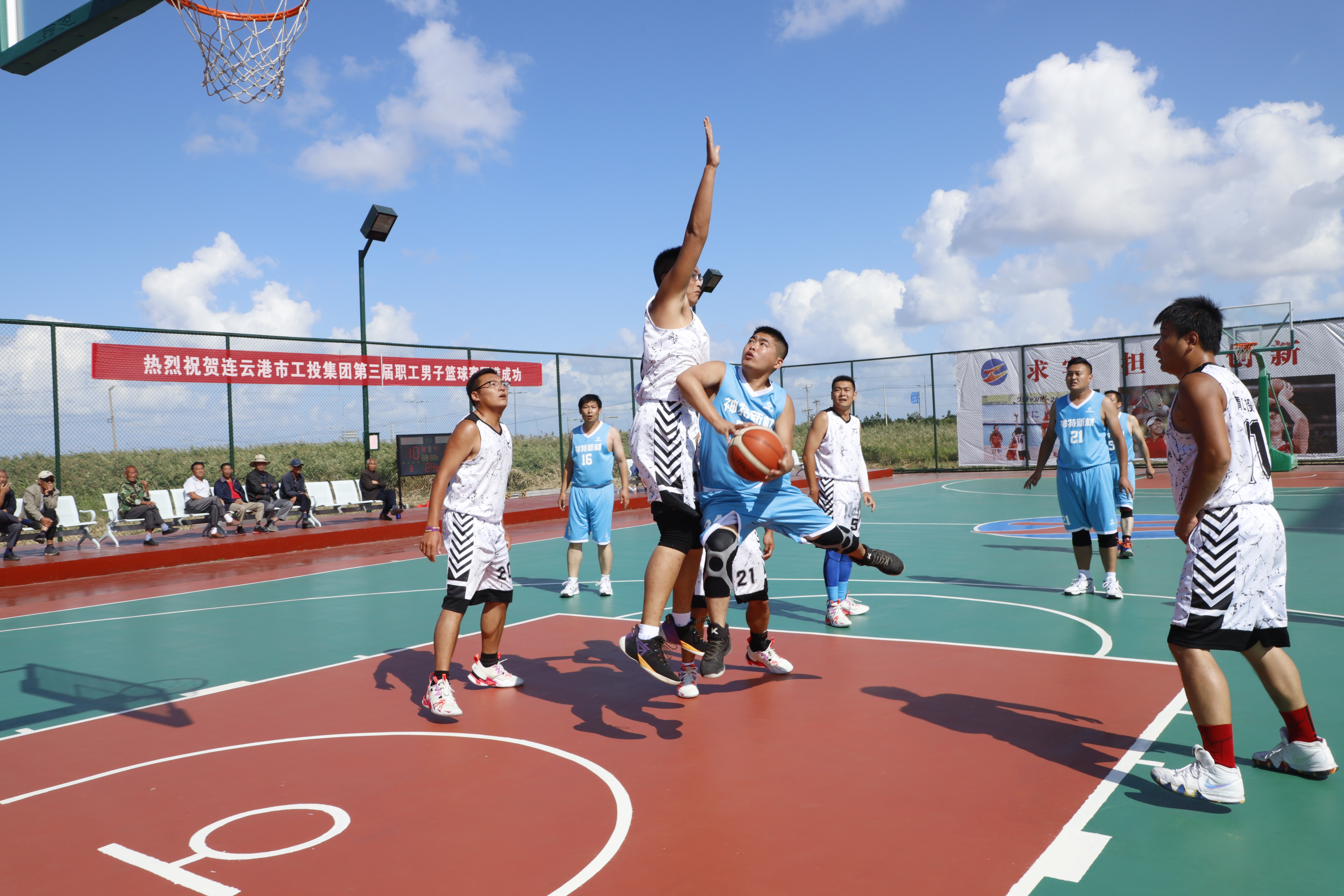 由于雙發(fā)實(shí)力比較懸殊,雙方打的比較放松。資產(chǎn)公司放下包袱,積極組織進(jìn)攻,效果不錯(cuò);灌西隊(duì)則利用這場(chǎng)比賽進(jìn)行一系列戰(zhàn)術(shù)演練,練習(xí)隊(duì)員的中遠(yuǎn)投。雙發(fā)分差一直咬的比較緊,一直保持在10分左右,最后一節(jié),資產(chǎn)加強(qiáng)進(jìn)攻,趁著灌西隊(duì)疏忽大意,連續(xù)上籃得分,最終比分定格在68:64,灌西取勝。