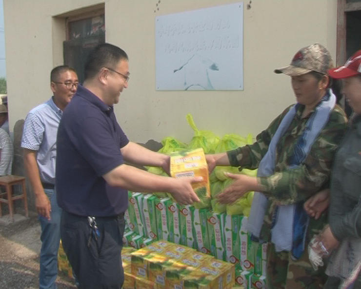 7月28日上午,集團公司董事長、黨委書記楊龍,工會主席戴鴻鳴一行深入日曬制鹽公司走訪慰問一線職工,把綠豆、飲料等慰問品送到他們手中,在炎炎夏季,為一線職工送去集團公司領導的深切關懷與陣陣清涼。