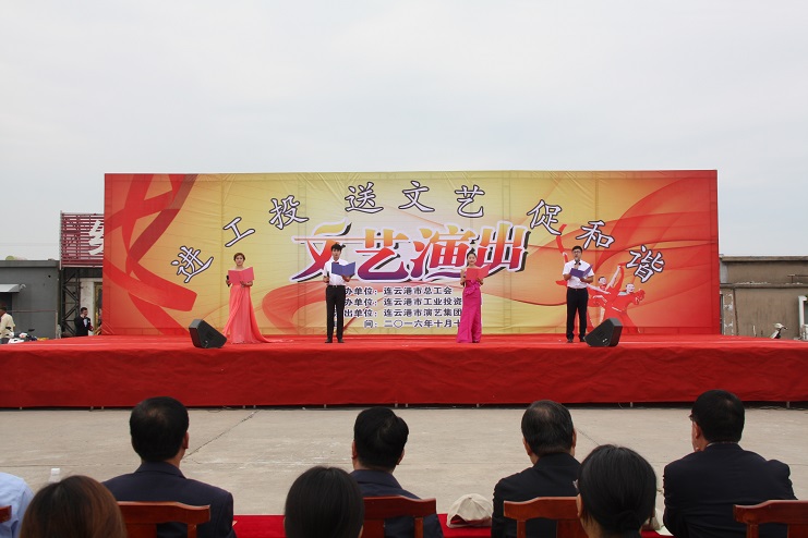 11日下午,灌西職工文化廣場人頭攢動,氣氛熱烈,“進(jìn)工投送文藝促和諧”文藝演出在此舉行。此次演出由市總工會、連云港市工投集團(tuán)主辦。市總工會副主席陳健、工投集團(tuán)公司工會主席戴鴻鳴、灌西投資公司領(lǐng)導(dǎo)及職工群眾1000余人觀看演出。