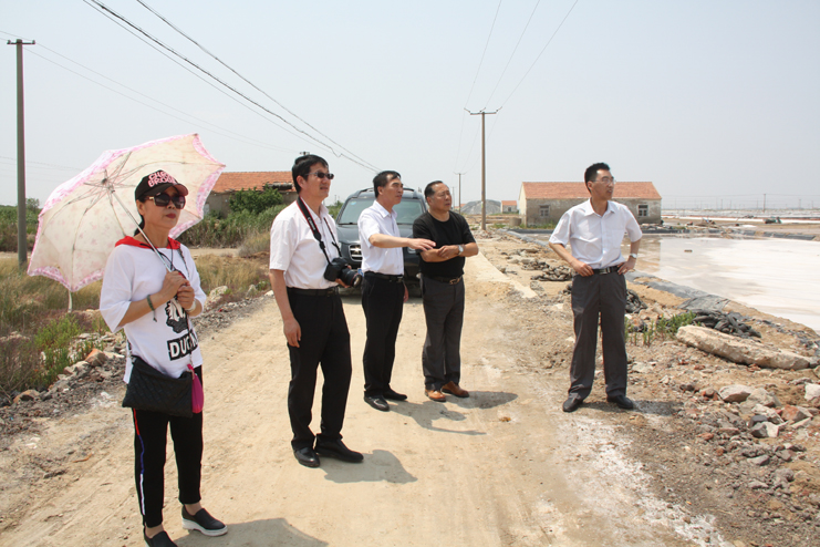 一行人先后到原民國(guó)時(shí)期公濟(jì)制鹽公司的辦公署遺址、早期產(chǎn)鹽平面灘和日曬制鹽公司的扒鹽現(xiàn)場(chǎng)參觀采風(fēng)。具有百年歷史的原公濟(jì)制鹽公司辦公署是灌西鹽場(chǎng)地區(qū)現(xiàn)存最古老的建筑物,也是整個(gè)淮鹽地區(qū)僅有的遺跡,隨著歷史的變遷,房屋雖幾經(jīng)改建,破損嚴(yán)重,但主體結(jié)構(gòu)仍然保留了下來(lái),是重要的淮鹽文化物證。位于鈣液復(fù)曬區(qū)的早期產(chǎn)鹽平面灘,是前不久為央視攝制組拍攝淮鹽發(fā)展歷史而改造的制鹽平面灘,復(fù)制了過(guò)去的制鹽工藝及生產(chǎn)過(guò)程,在平面灘上,大家拿起收鹽刮板,挑起鹽筐,手推小鹽車,一一體驗(yàn)一下過(guò)去鹽工們的勞動(dòng)方式。在新河制鹽分公司十班的扒鹽現(xiàn)場(chǎng),機(jī)聲隆隆,潔白鹽廩不斷壯大,這是日曬制鹽公司上半年最后一臺(tái)正在扒鹽的機(jī)組,其余的七臺(tái)扒鹽機(jī)組已經(jīng)先后完成的扒鹽任務(wù),正在進(jìn)行最后三塊格的扒鹽工作。大家一邊參觀,一邊拍照,通過(guò)古今不同時(shí)期產(chǎn)鹽方式對(duì)比,對(duì)過(guò)去鹽工們的艱辛勞動(dòng)和現(xiàn)代制鹽技術(shù)的革新,生產(chǎn)力的提高都有了直接的感受,個(gè)個(gè)感觸頗深。(季興勝)