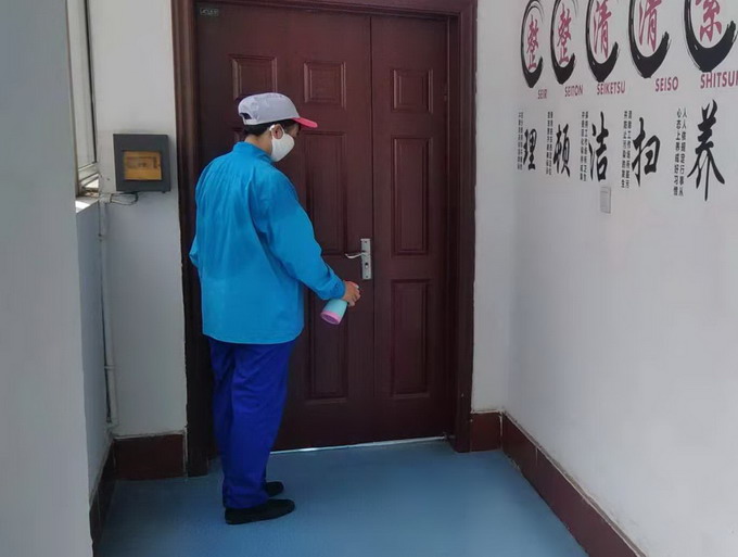 保潔人員每天對車間公共區(qū)域做好消殺工作
