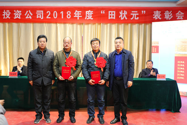 11月29日,在職工活動室隆重舉行2018年度“田狀元”表彰大會。投資公司黨委書記、董事長胡傳法及班子全體成員參會?;鶎痈笨萍壱陨稀C關(guān)全體管理人員及部分條田工參加。會議由投資公司黨委副書記、工會主席史祥平主持。