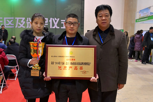 新年伊始,萬(wàn)象更新,公司 “鹽田玉”大米再獲重量級(jí)榮譽(yù)。在 2018第十九屆(北京)國(guó)際優(yōu)質(zhì)大米及品牌雜糧博覽會(huì)上,我公司鹽田玉香米經(jīng)過(guò)產(chǎn)品品質(zhì)檢測(cè)、品嘗、營(yíng)養(yǎng)分析等程序?qū)徍?,完全符合評(píng)獎(jiǎng)要求,在600多家參展企業(yè)中脫穎而出,被授予“優(yōu)質(zhì)產(chǎn)品獎(jiǎng)”榮譽(yù)稱號(hào)。
