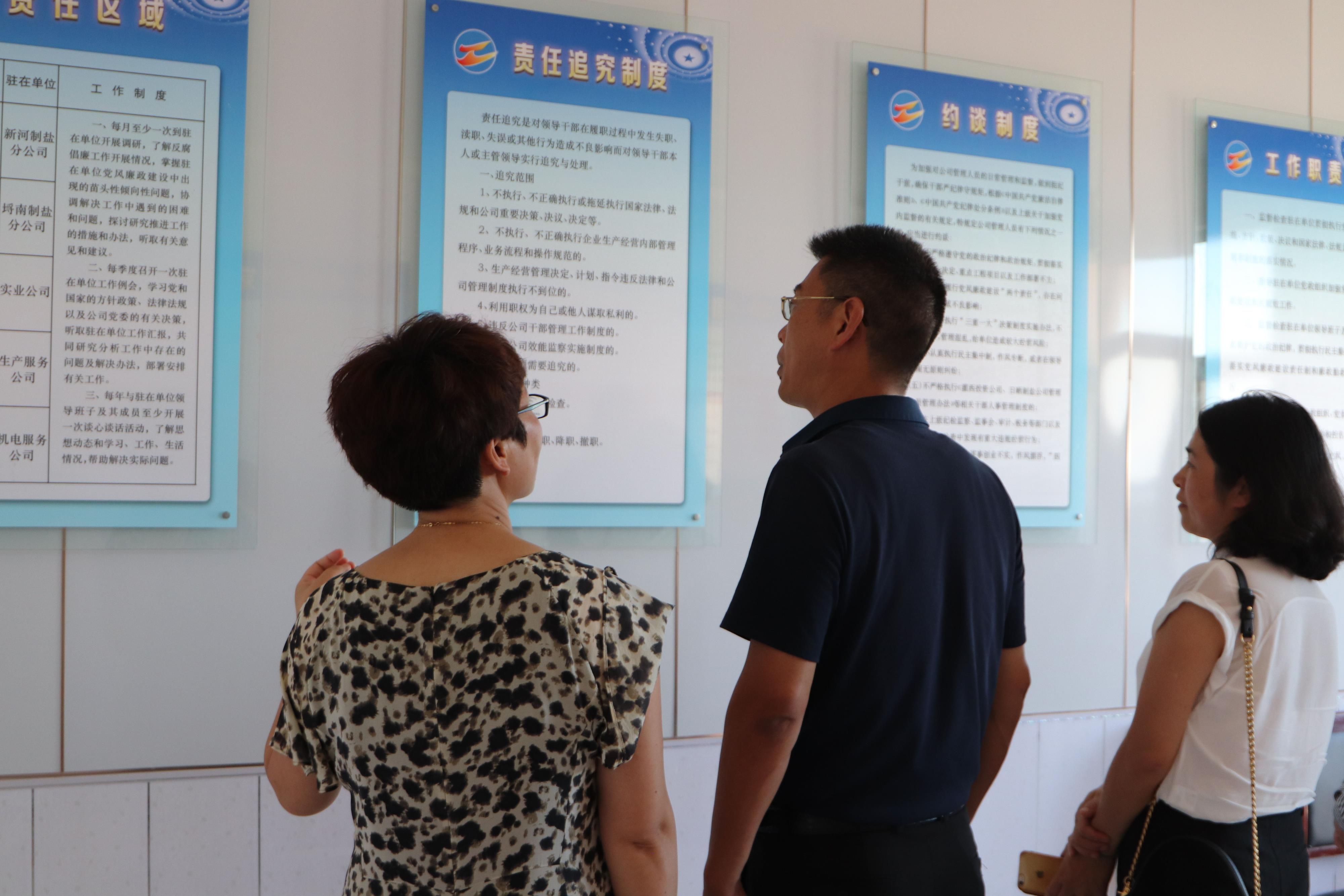 731日下午,神特公司與奧神新材料公司兩家紀(jì)檢干部結(jié)伴同行,前往灌西投資公司參觀(guān)學(xué)習(xí)。在灌西投資公司紀(jì)委書(shū)記王宏的陪同下,神特公司和奧神公司的紀(jì)檢人員參加了灌西投資公司經(jīng)營(yíng)單位片區(qū)第二季度黨風(fēng)廉政發(fā)布會(huì),聽(tīng)取了二季度黨風(fēng)廉政建設(shè)情況,隨后觀(guān)摩了新河、埒南、西旺等支部黨建活動(dòng)室,日曬制鹽片區(qū)、灌西經(jīng)營(yíng)單位片區(qū)兩個(gè)派駐基層監(jiān)察室,查看了紀(jì)檢工作臺(tái)賬,并一同觀(guān)看了廉政微電影《鹽光》。
